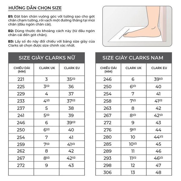 • Để kéo dài tuổi thọ của giày, nên thường xuyên đánh bóng (đối với chất liệu da bóng) và tránh tiếp xúc với nước.