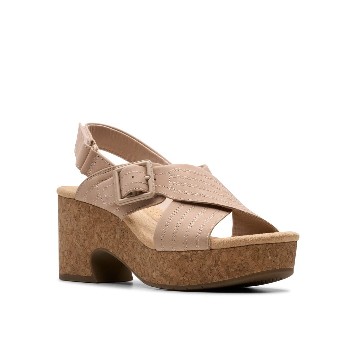 Phần đế nút bần và chất liệu da nubuck cao cấp định hình Nerisa West. Với điểm nhấn là khóa cài và đường khâu thủ công tạo nên vẻ đẹp tinh xảo.